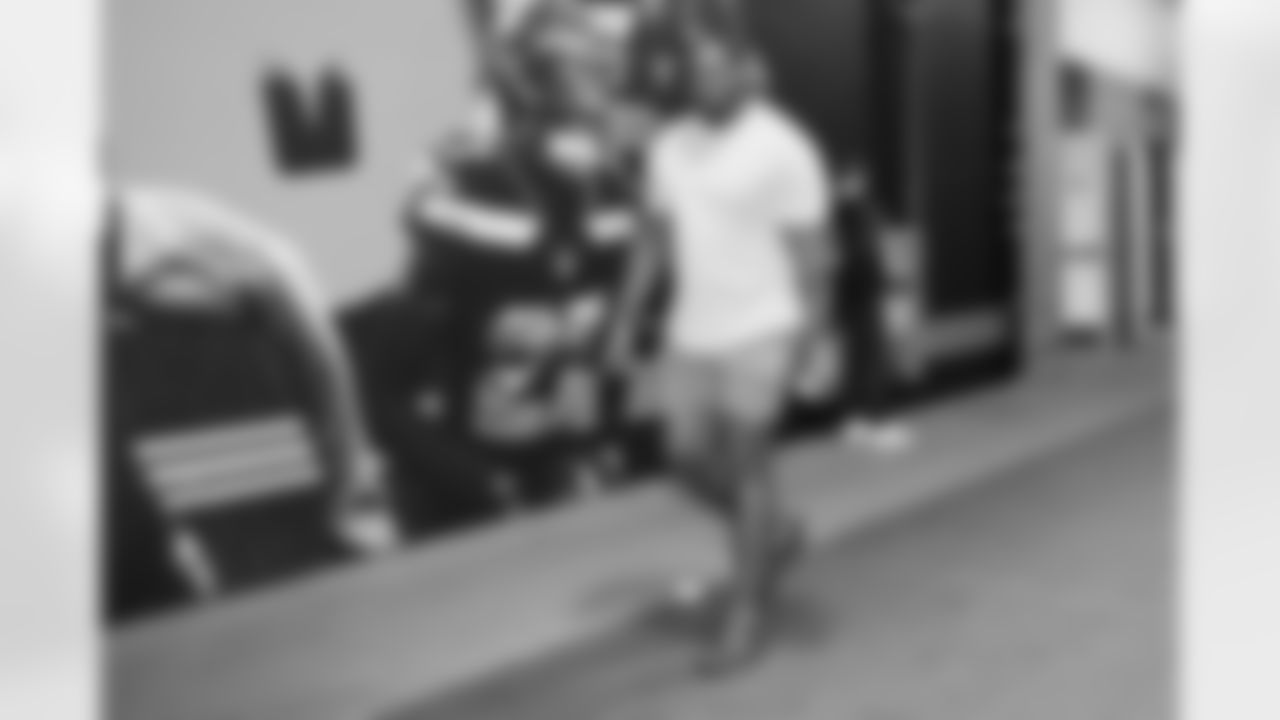 Seahawks cornerback Michael Jackson (30) and John Schneider arrive at Lumen Field for the Week 1 matchup vs. the L.A. Rams.