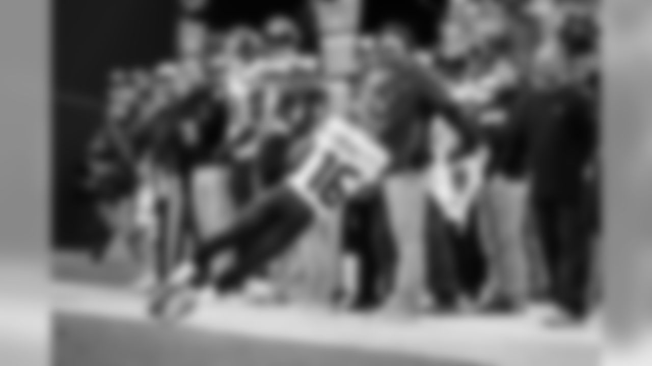 Seattle's Tyler Lockett fights for the end zone but fall just short at the end of the third quarter.