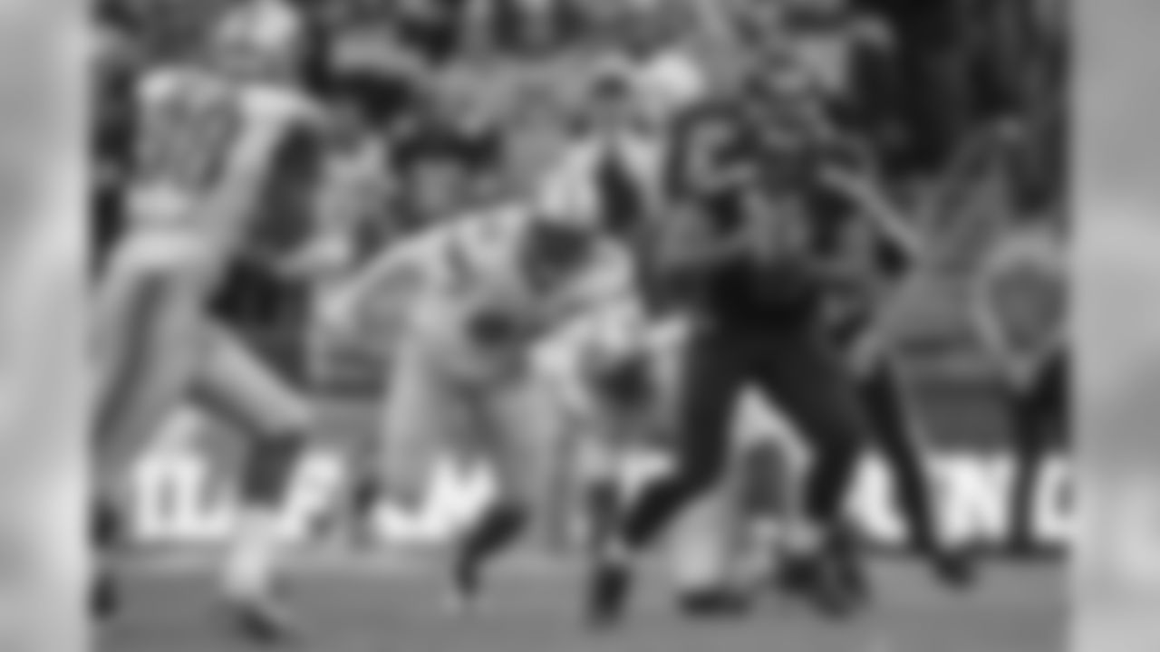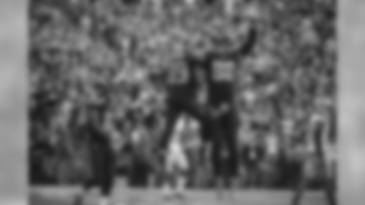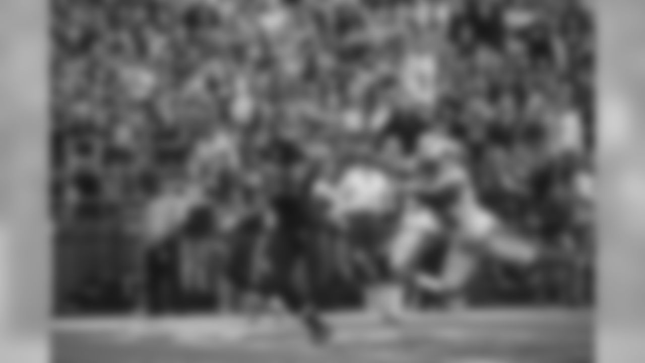 Quarterback Russell Wilson was under constant pressure from the Lions' pass rush, and after escaping a sack on this play, looked downfield to hit receiver Jermaine Kearse for a 34-yard gain.