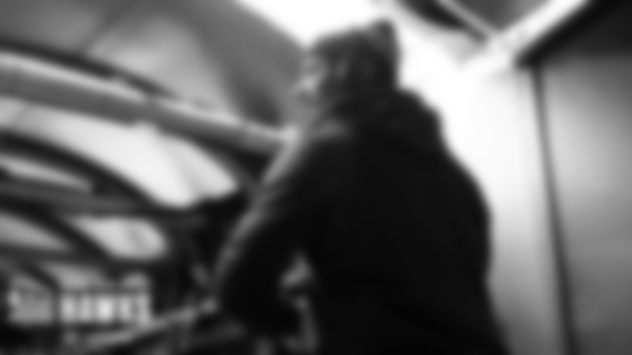 Seahawks offensive tackle Duane Brown on the field during early warmups.