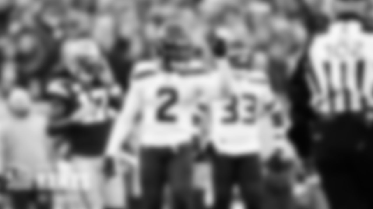 Seahawks cornerback Tre Brown reacts after making a play.