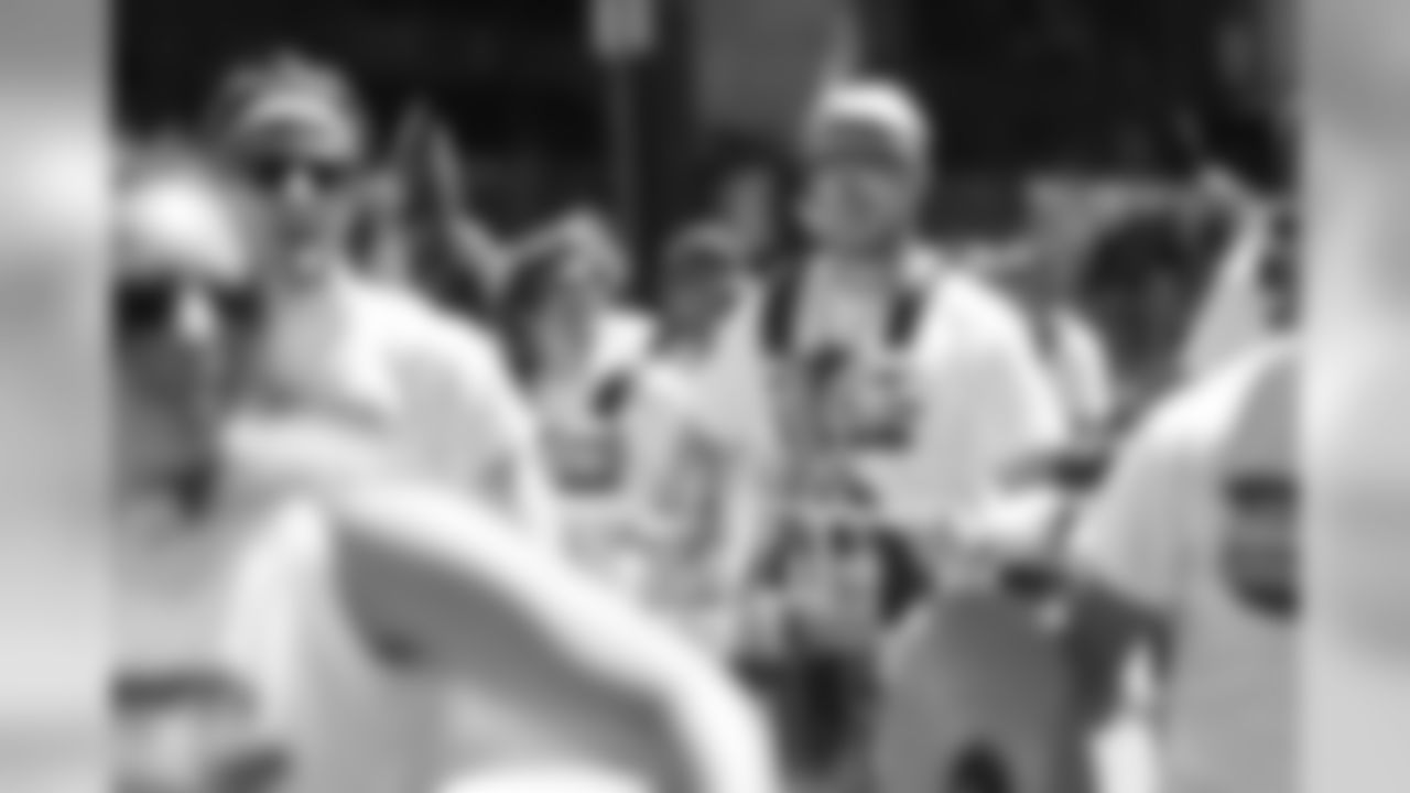 Seahawks drumline Blue Thunder and a handful of Seahawks staff members marched through downtown Seattle in the Pride Parade.