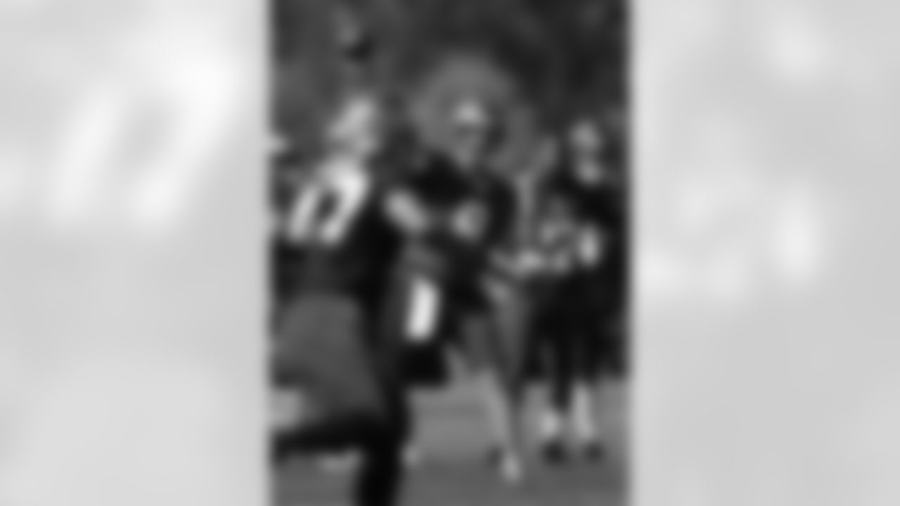 Nate Burelson conducts an interview following Saturday morning's practice