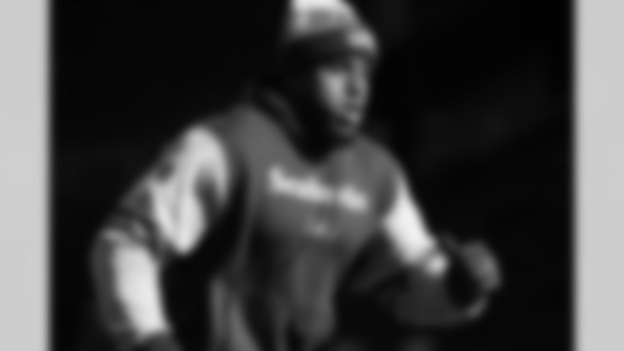 Seahawks players hit the field in their brand new throwback uniforms to warm up for the upcoming matchup with the Cleveland Browns.