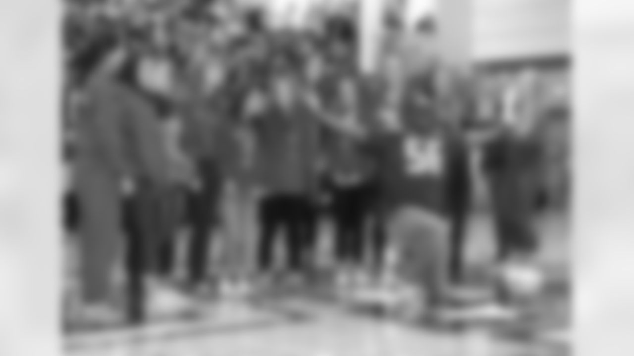 Cliff Avril surprised the students of Liberty High School in Renton with a pep rally to reward them for their fundraising in October benefiting Wings of Karen and a donation will be made on the students behalf to the foundation by CenturyLink.