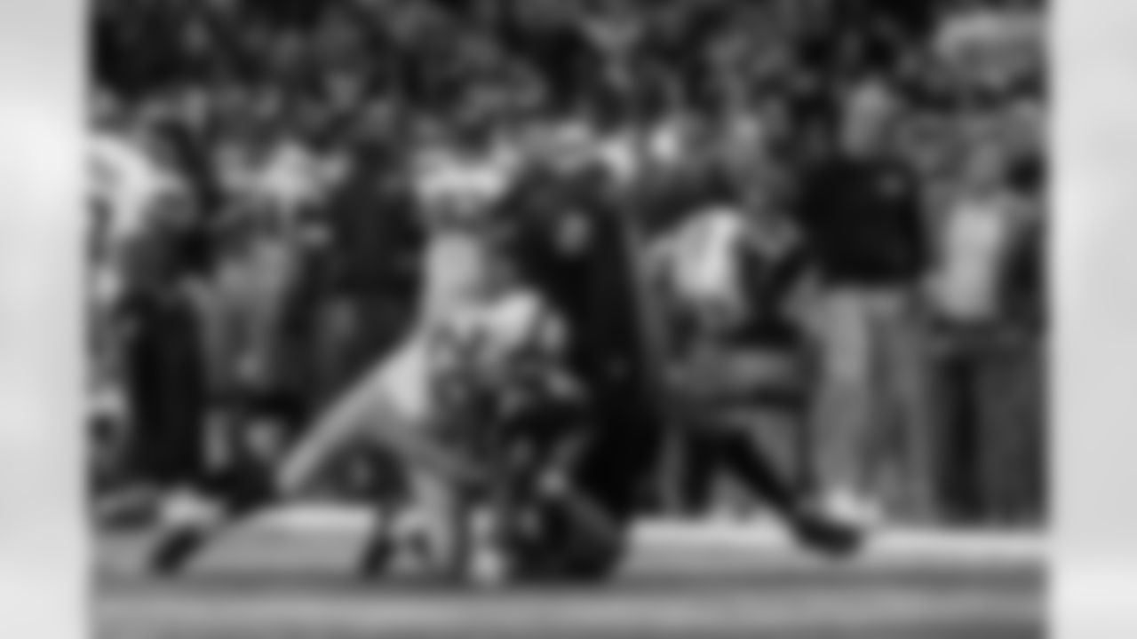 Tight end Cooper Helfet made his start at tight end a memorable one, catching this pass in the corner of the end zone and somehow keeping his toes inbounds.
