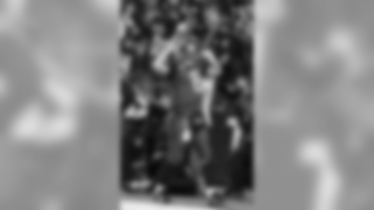 Seattle Seahawks' Jordan Babineaux, left, celebrates with fans after the team upset the New Orleans Saints in an NFL NFC wild card playoff football game, Saturday, Jan. 8, 2011, in Seattle. The Seahawks won 41-36. (AP Photo/Elaine Thompson)