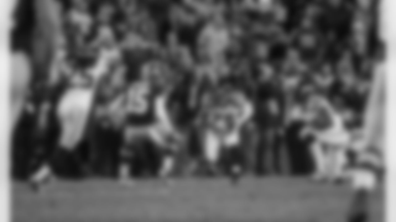 Seattle Seahawks defensive end Bruce Irvin celebrates his team's victory on the sidelines after an NFL wild card playoff football game against the Washington Redskins in Landover, Md., Sunday, Jan. 6, 2013. The Seahawks defeated the Redskins 24-14. (AP Photo/Richard Lipski)