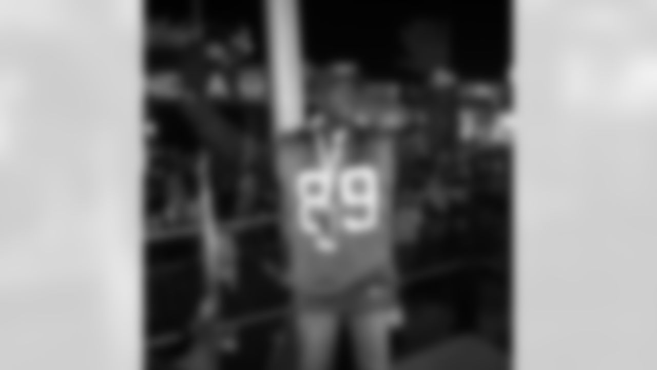 Seahawks superfan Patti "Mama Blue" Hammond, right, blows kisses to the team as they leave the field after the Seahawks beat the St. Louis Rams 16-6 in an NFL football game, Sunday, Jan. 2, 2011, in Seattle. (AP Photo/Ted S. Warren)