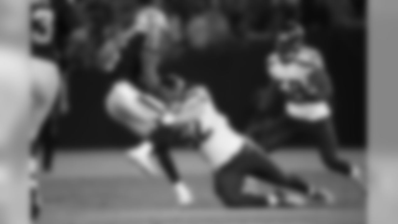 With Seattle's offense struggling to get much going, it was the defense that finally got the Seahawks in the end zone thanks to a Ryan Robinson interception and 42-yard return for a touchdown. Linebacker Eric Pinkins helped make that play happen by pressuring Raiders quarterback Connor Cook. Pinkins also made a huge tackle on the Raiders' potential game-tying 2-point conversion attempt late in the game.