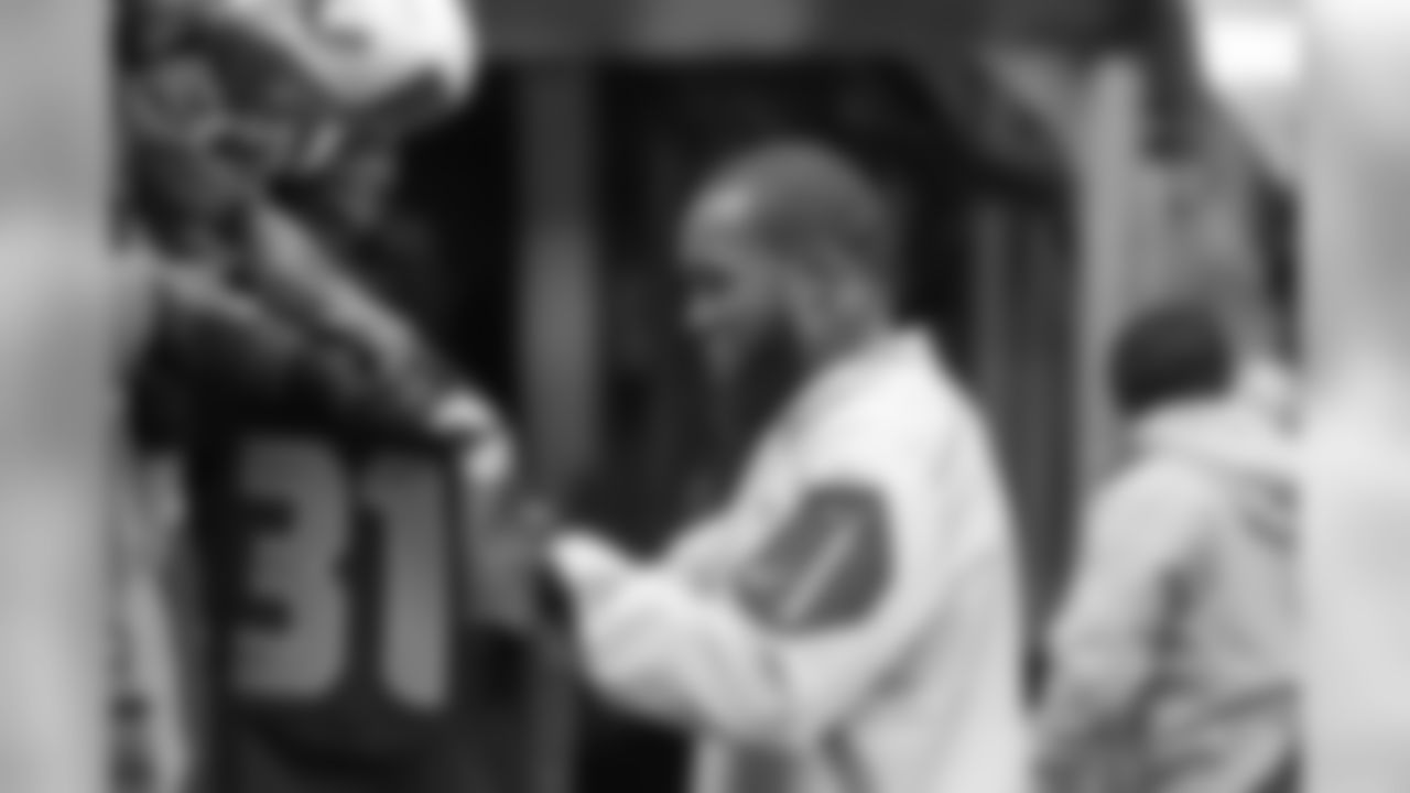 "Bltiz" greets Kam Chancellor after the game as Chancellor makes his way to the locker room.