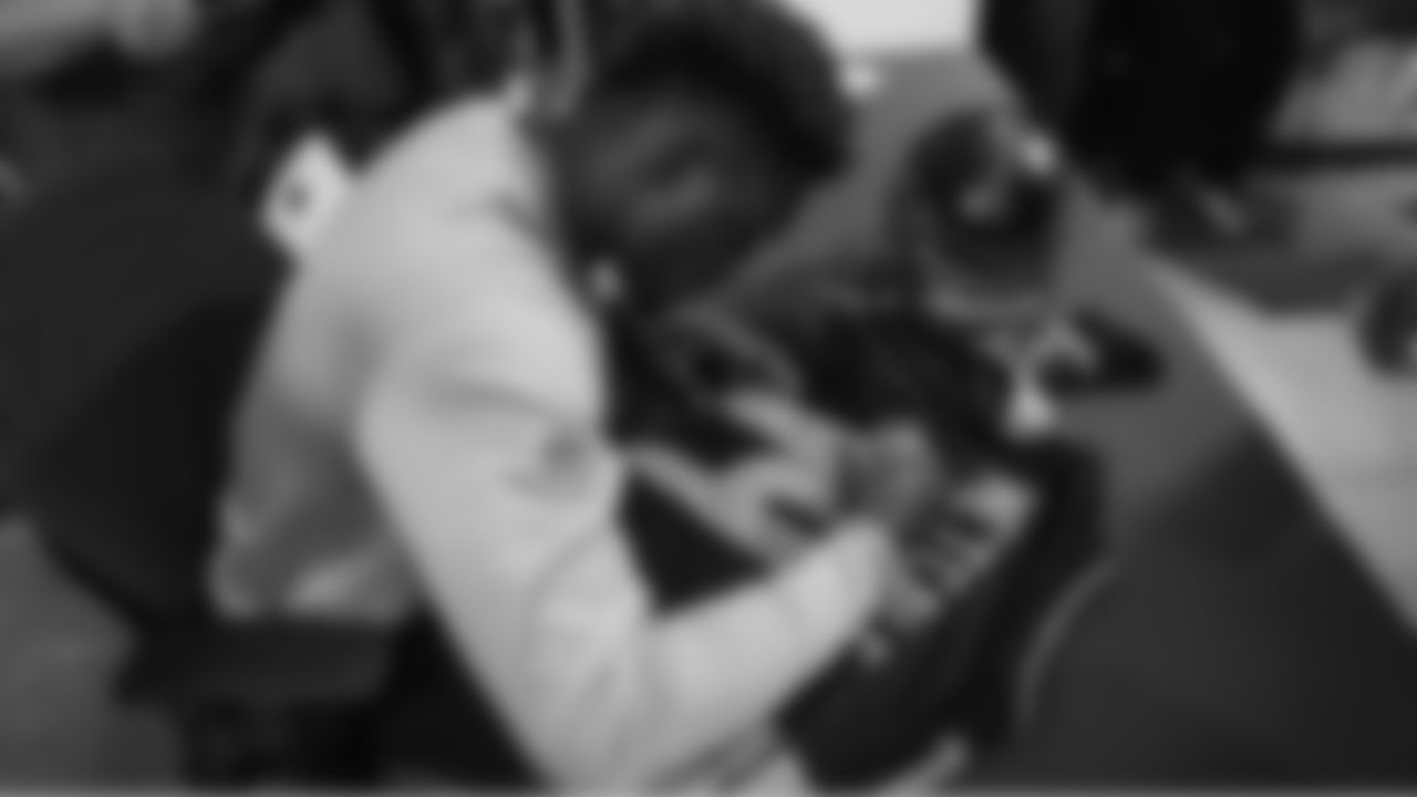 Seahawks rookie receiver DK Metcalf spends his Tuesday helping out at Q13 FOX's sock drive held at the Seahawks Pro Shop in Renton, Washington.