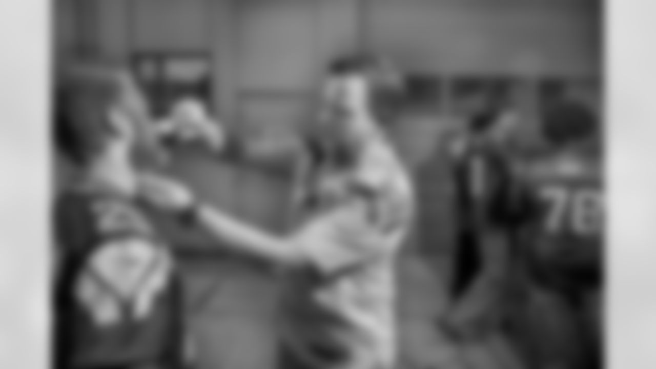 Fans take a break from climbing stairs to watch pregame warm-ups.