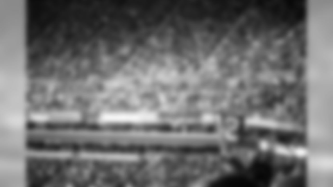 Fans in the south end zone yell in hopes of breaking the Guinness record for loudest stadium.