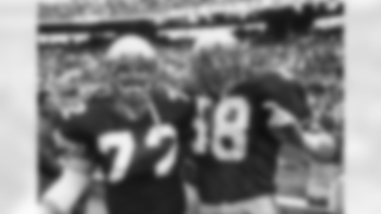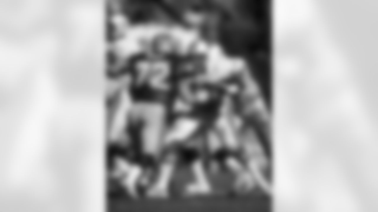 Seattle Seahawks nose tackle Joe Nash (72) rushes during a 31 - 10 loss to the Miami Dolphins in the 1984 AFC Divisional Playoff Game on December 29, 1984 at the Orange Bowl in Miami, Florida. (Al Messerschmidt via AP)