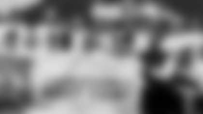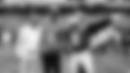 Seahawks quarterback Russell Wilson and associates from the Why Not You Foundation, Virginia Mason, and Safeway, present a check to support the Strong Against Cancer initiative before the preseason week 4 matchup against the Oakland Raiders at CenturyLink Field.